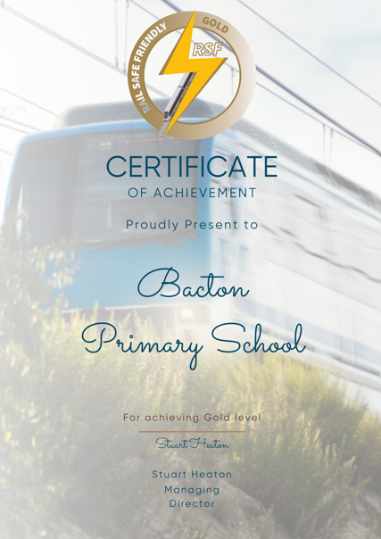 We are delighted to announce that our school has been awarded the Gold Rail Safety Certificate, recognising our outstanding commitment to keeping children safe around railway lines.