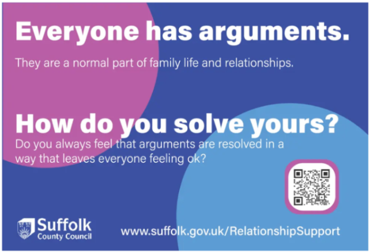 Suffolk County Council have a new range of relationship support and advice on offer for parents. These can be accessed by scanning the QR code above or following this link: https://www.suffolk.gov.uk/children-families-and-learning/suffolk-family-hubs/support-for-parents-and-carers/relationship-support-for-parents